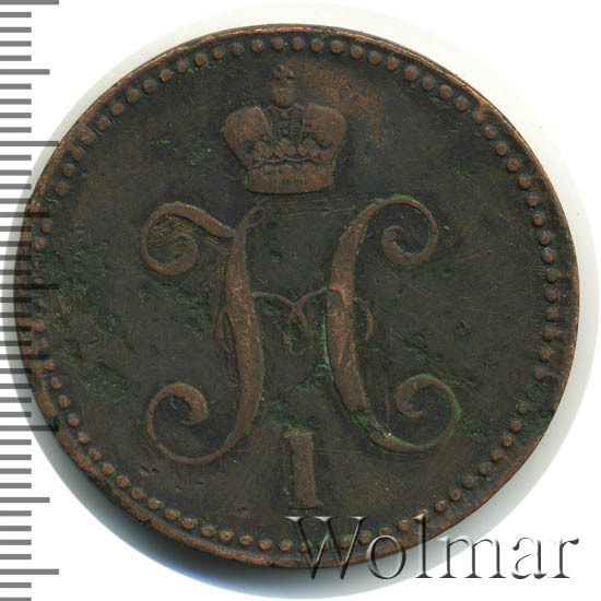 В центре вензель Николая I. Над ним Корона Российской империи. По окружности канта имеются рельефные элементы, выполненные в виде точек.
