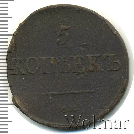 Цена на монету 5 копеек 1833 года СМ на сегодня, 9 декабря 2025 года