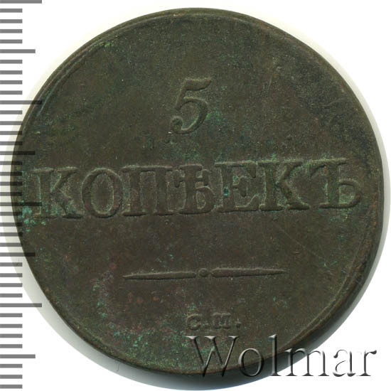 5 копеек 1830-1839 "орел с опущенными крыльями"