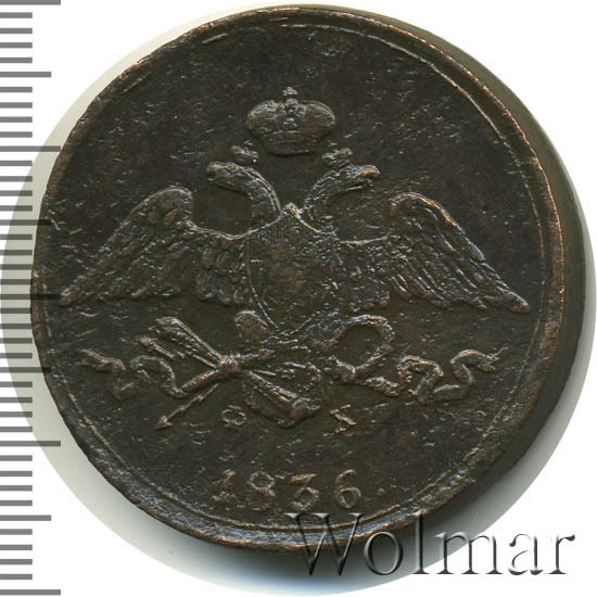 Реверс монеты 5 копеек 1836 года ЕМ-ФХ