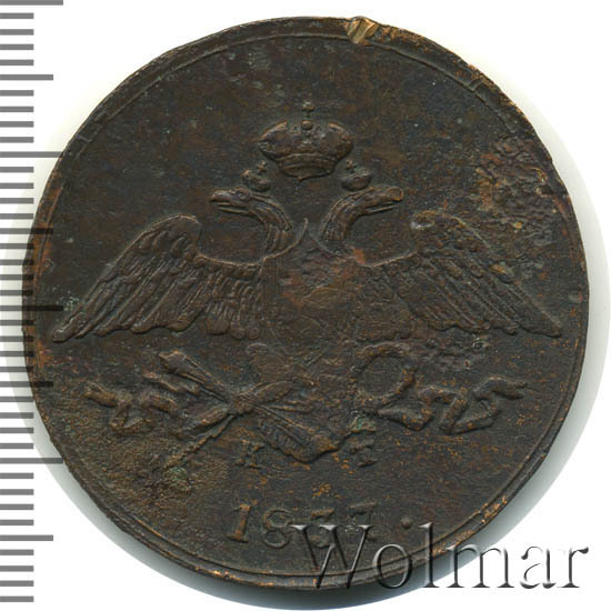 Реверс монеты 5 копеек 1837 года ЕМ-КТ