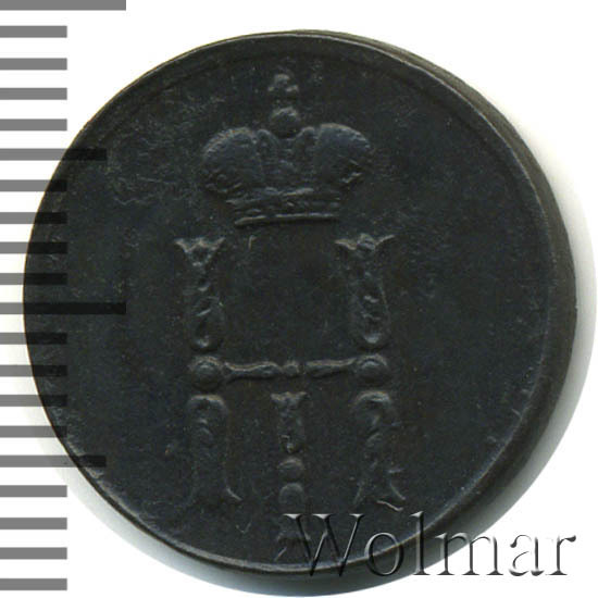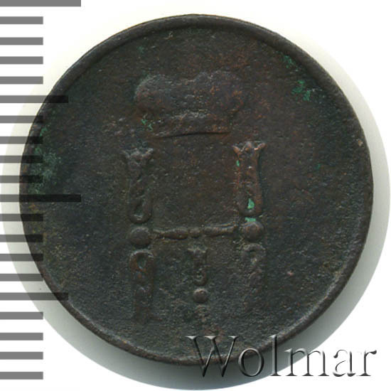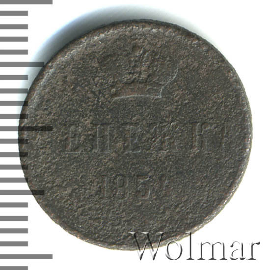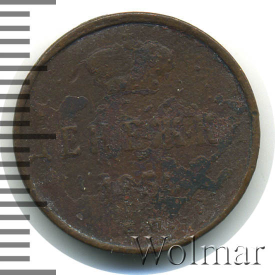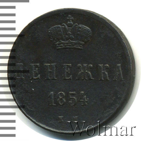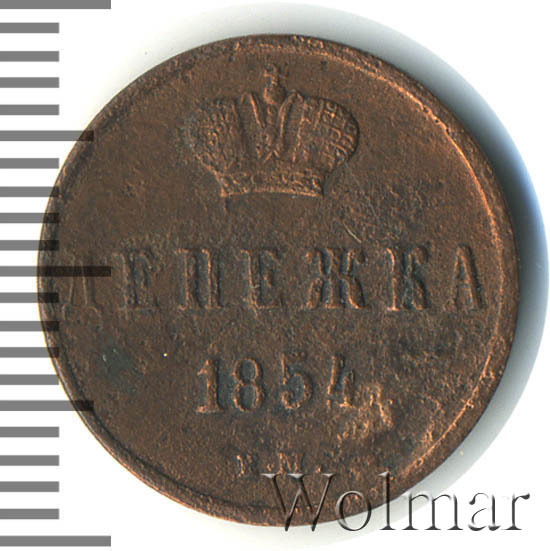Реверс монеты денежка 1854 года ЕМ
