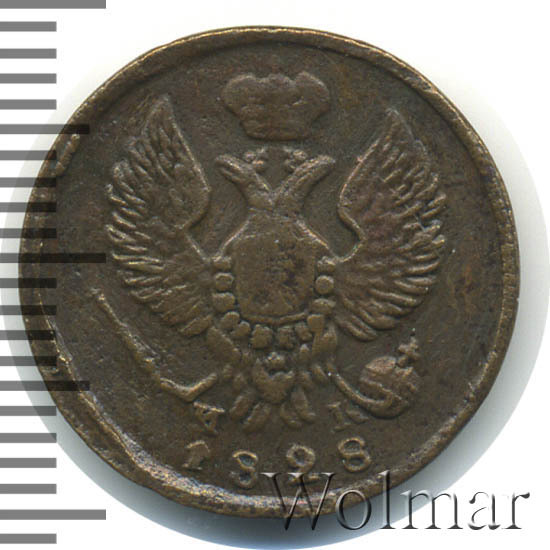 Аверс монеты деньга 1828 года ЕМ-ИК
