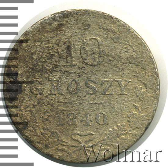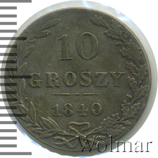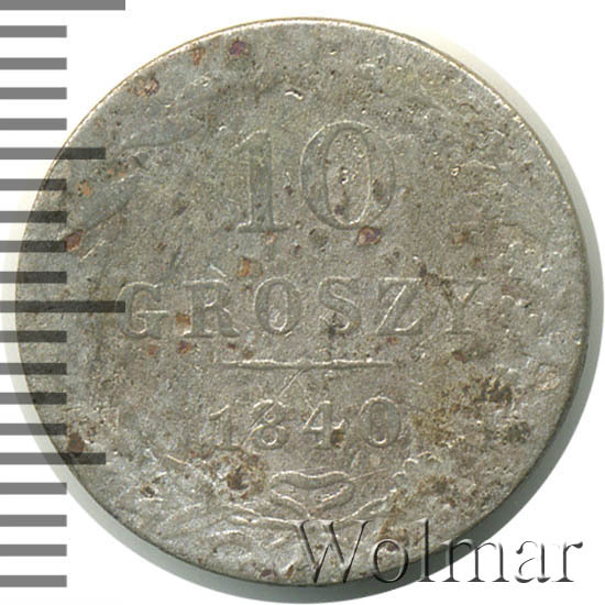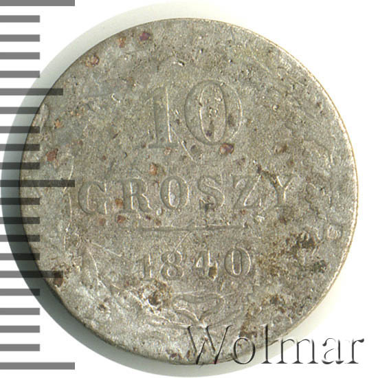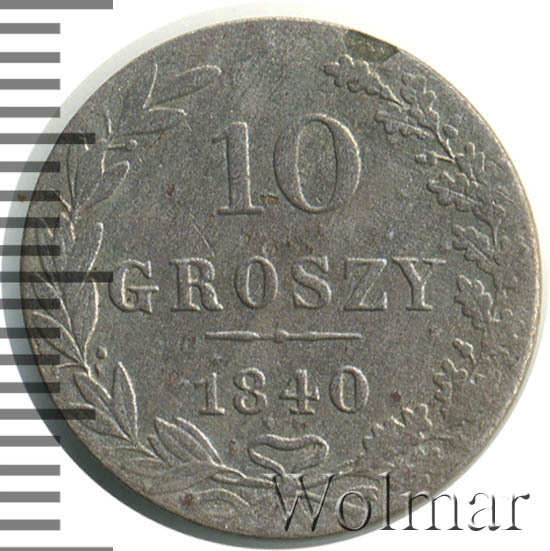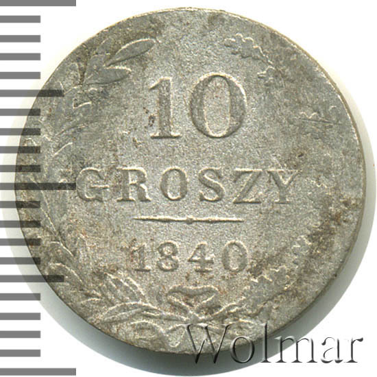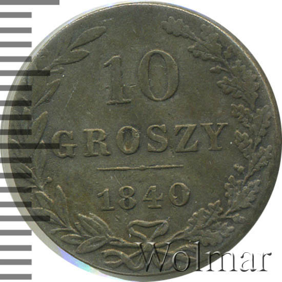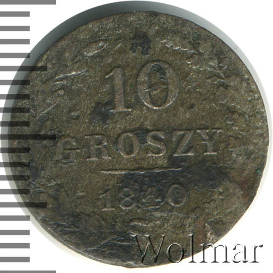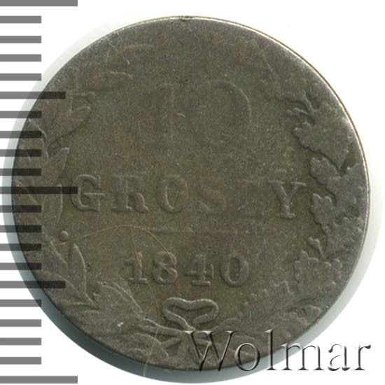 Аверс монеты 10 грошей 1840 года MW