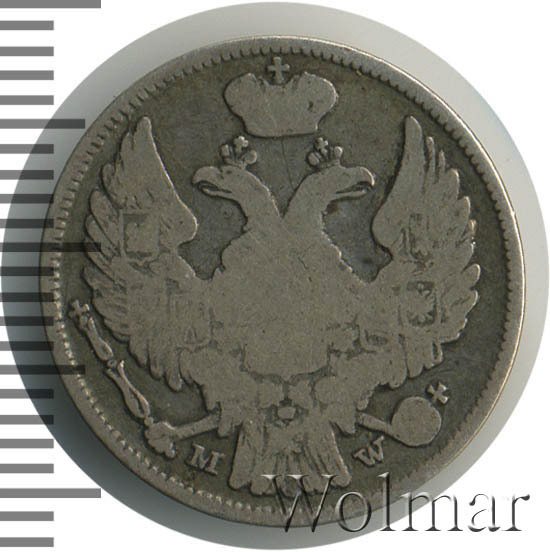 Цена на монету 15 копеек - 1 злотый 1838 года MW на сегодня, 21 декабря 2025 года