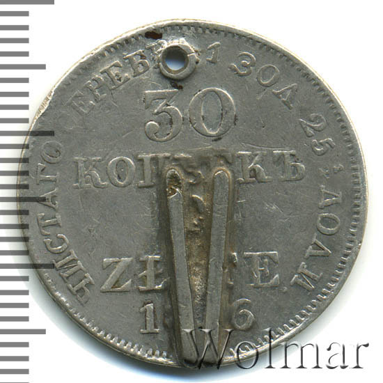 30 копеек - 2 злотых. Заделано отверстиебуквы MW Аукцион: Wolmar Standart Состояние: F/VF | 08.10.2025 |