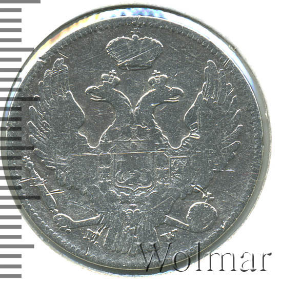 Цена на монету 30 копеек - 2 злотых 1838 года MW на сегодня, 7 января 2026 года