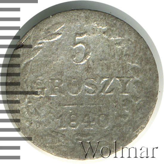 Реверс монеты 5 грошей 1840 года MW без плаща