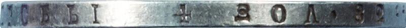 В центре указан номинал «МОНЕТА РУБЛЬ» в две строки. Над номиналом – Корона Российской империи. Под номиналом расположен декоративный разделитель в виде двух разнонаправленных фигурных линий и небольшой окружности между ними, в центре которой, выпуклая точка. Под разделителем — дата выпуска монеты «1835». Под цифрой даты — обозначение монетного двора «С.П.Б.». Вдоль канта, не доходя до короны, изображен венок из лавровой и дубовой ветви, которые в нижней части перевязаны лентой на узел бантом. По окружности канта имеются рельефные элементы, выполненные в виде зубцов.