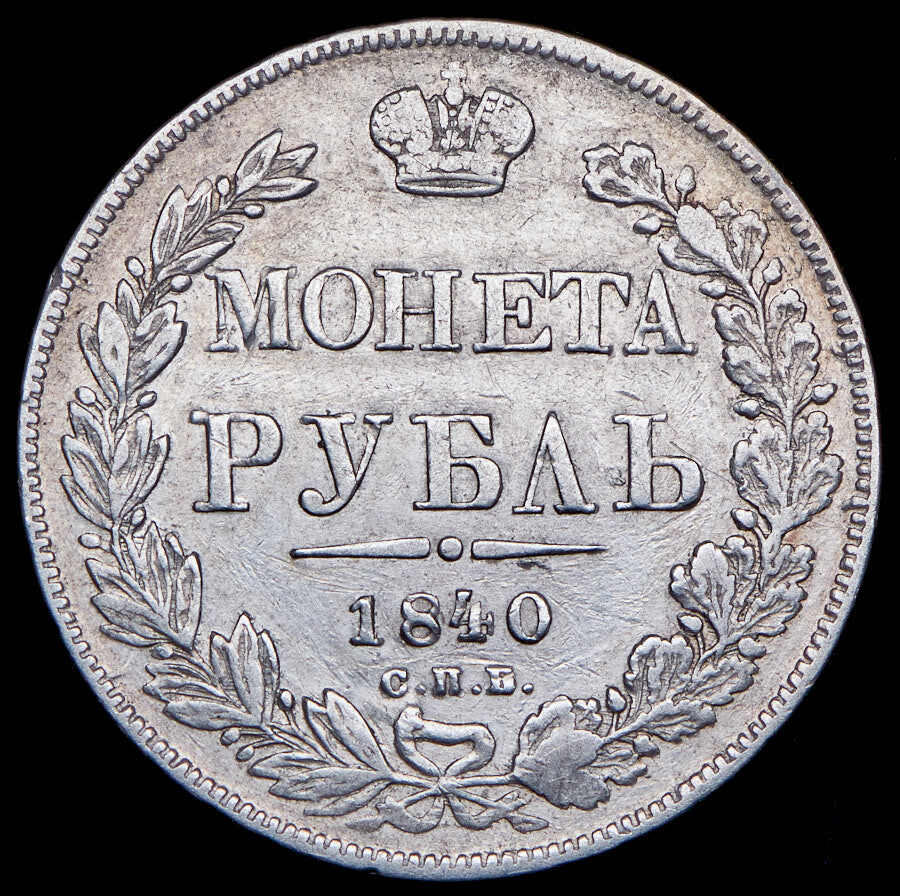 '1 рубль 1840 СПБ-НГ 11 перьев'