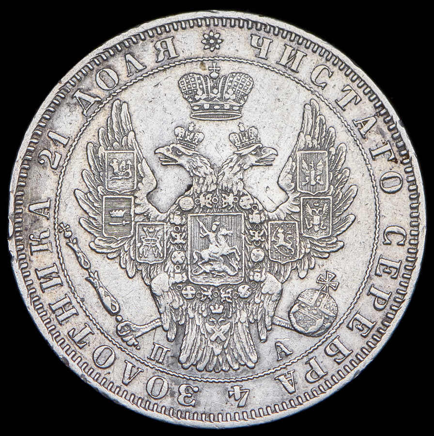 1 рубль 1847 СПБ-ПА в плаще