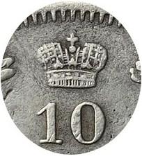 Аверс монеты 10 копеек 1849 года СПБ-ПА орёл 1851, корона узкая