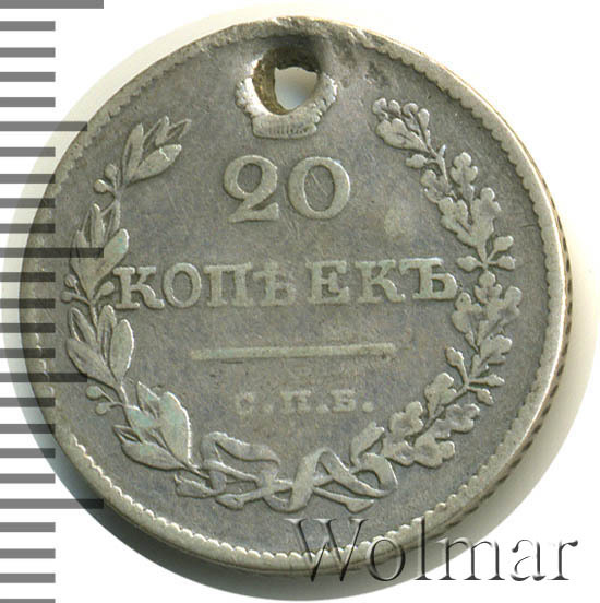 20 копеек. Заделано отверстиебуквы СПБ НГ Аукцион: Wolmar Standart Состояние: F/VF | 15.10.2025 |