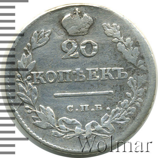 Реверс монеты 20 копеек 1826 года СПБ-НГ с опущенными крыльями