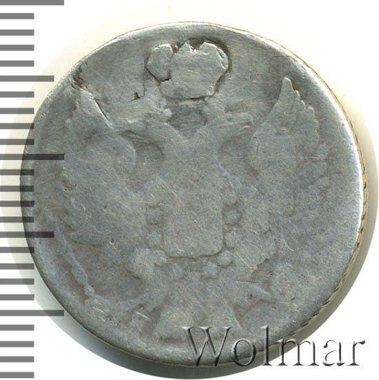 20 копеек. Заделано отверстиебуквы СПБ НГ Аукцион: Wolmar Standart Состояние: F/VF | 25.12.2024 |