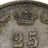 Цена на монету 25 копеек 1854 года MW корона малая на сегодня, 25 октября 2025 года