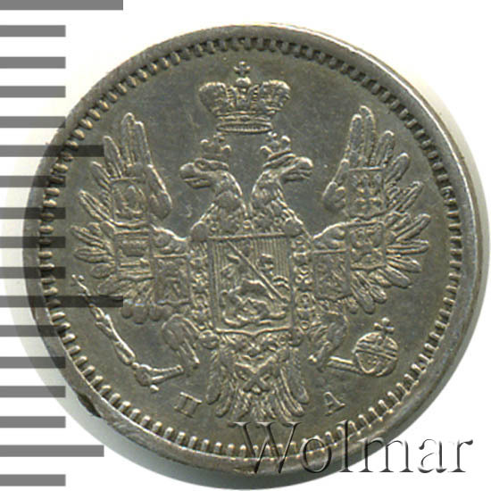 Аверс монеты 5 копеек 1851 года СПБ-ПА