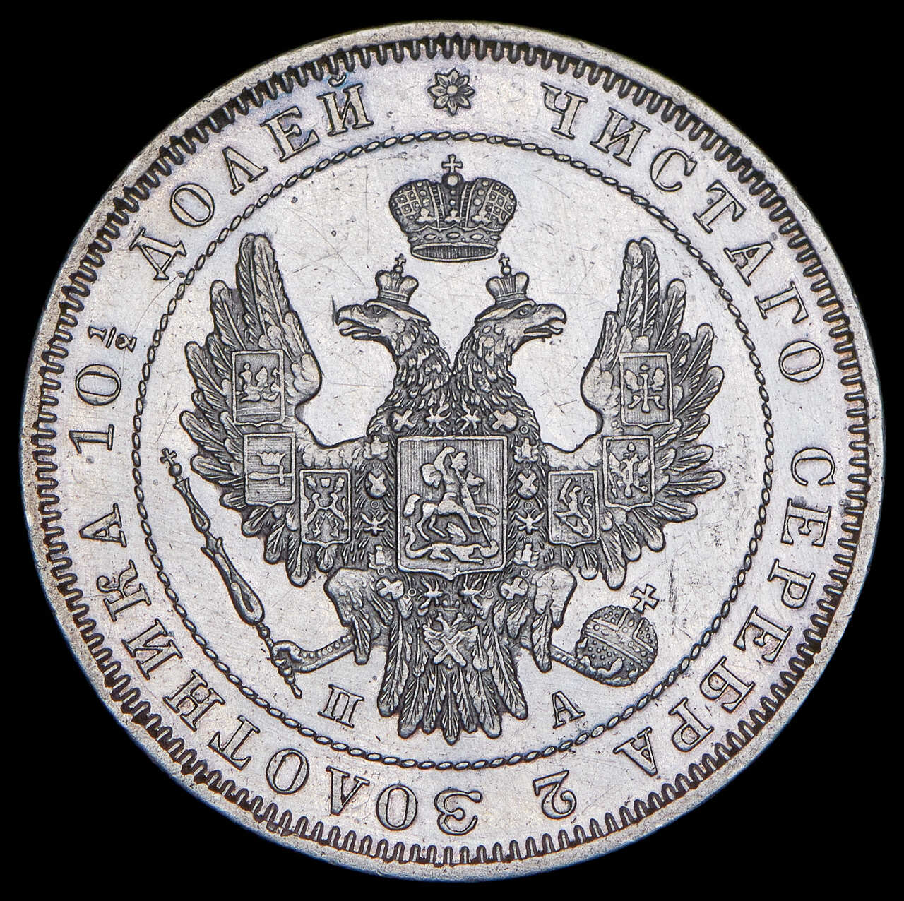 полтина 1847 СПБ-ПА орёл 1845, 7 звеньев