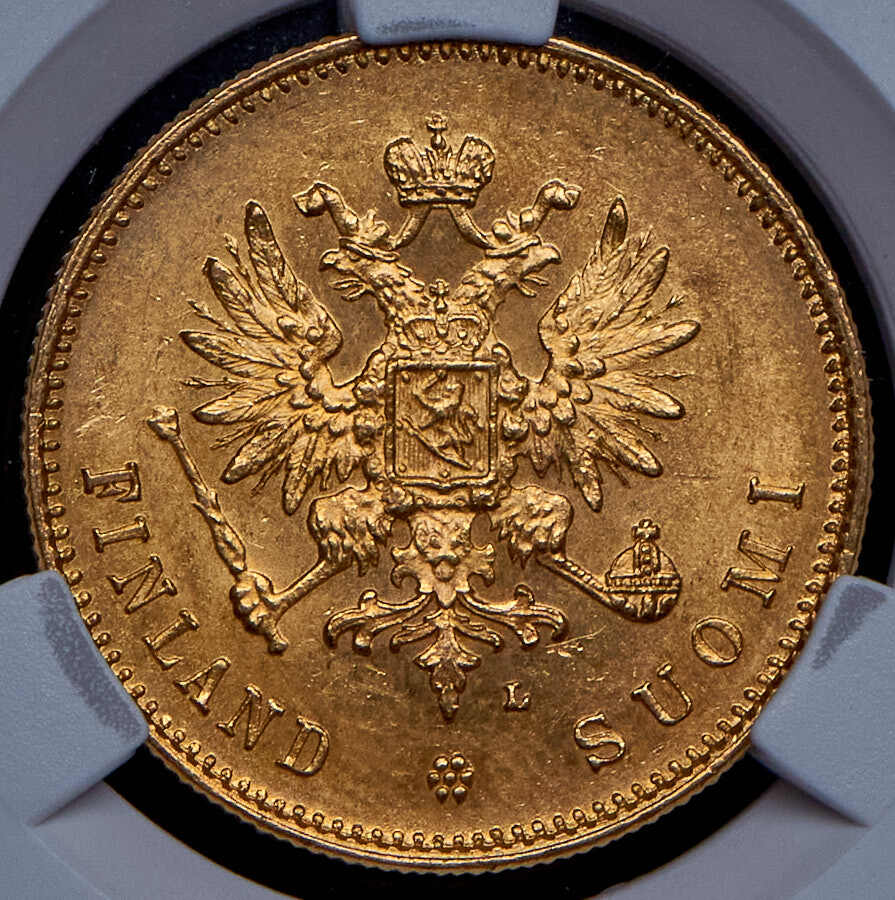 20 марок. Финляндиябуквы L Аукцион: Wolmar VIP Состояние: MS 63  | 08.08.2024 | MS 63 | 105 550  ₽ | ||||