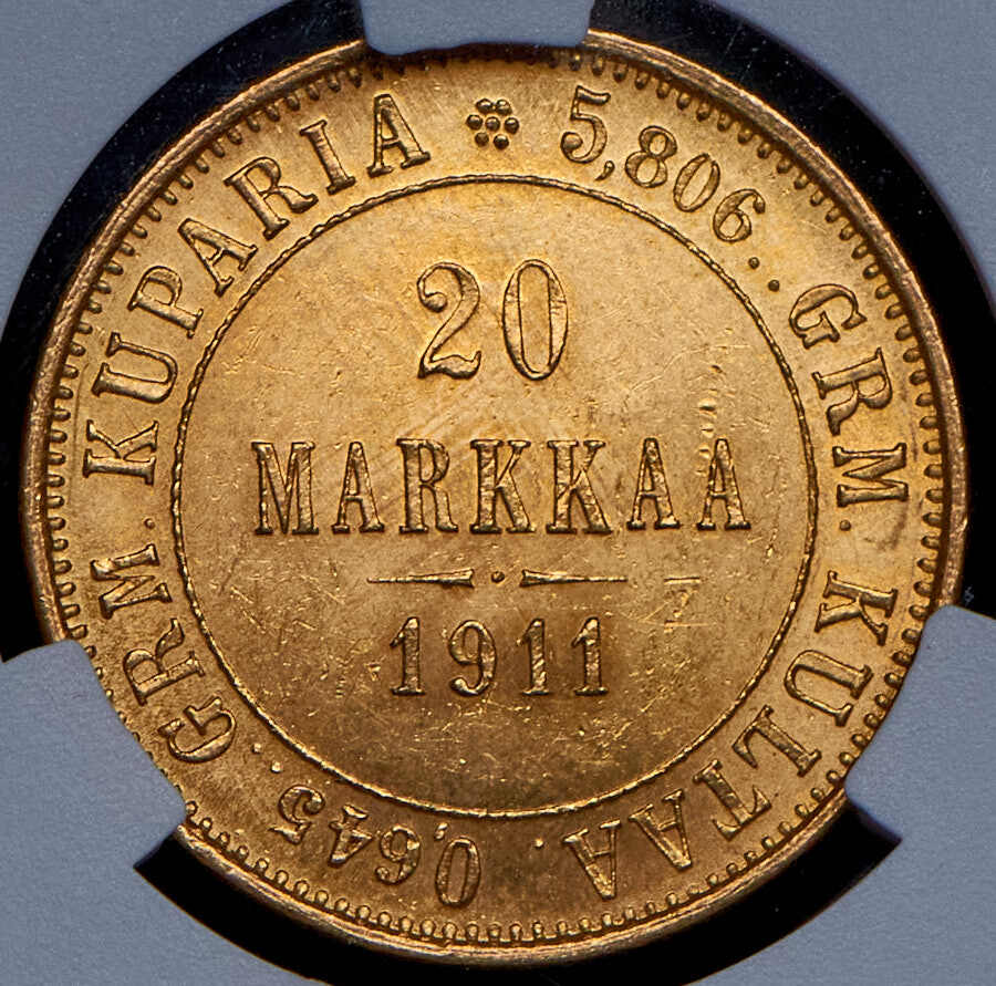 20 марок 1911 (Финляндия) (в слабе)буквы L Аукцион: AdaCoins Online Состояние: MS 62  | 18.09.2025 | MS 62 | 80 000  ₽ Старт: 80 000 ₽ | ||||