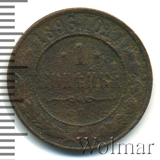 Медная монета 1 копейка 1896 года чеканилась на Бирменгемском монетном дворе в Великобритании, несмотря на обозначение СПБ на реверсе монеты. Заказ был принят от Императорского двора на производство всех медных монет этого года, кроме 5 копеек. Производств в Великобритании продолжалось с 1896 по 1898 года. Данная монета является довольно редкой в сохране UNC.