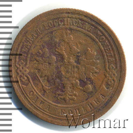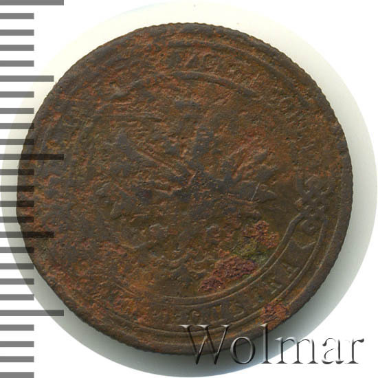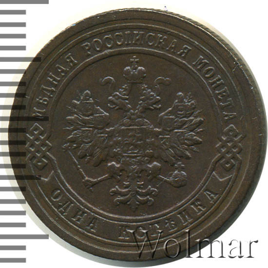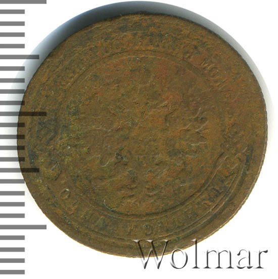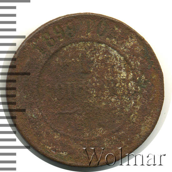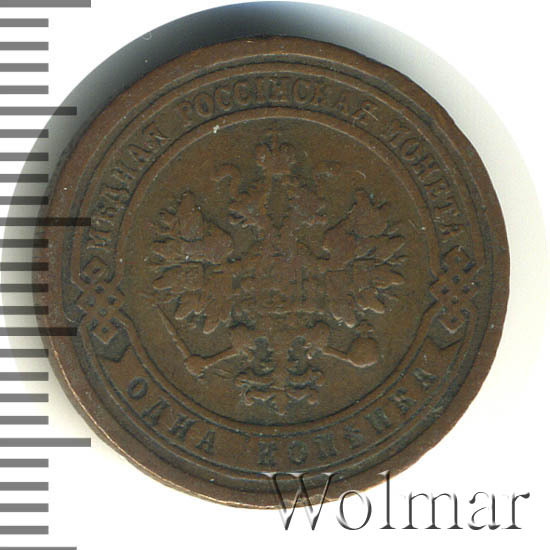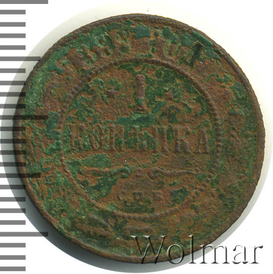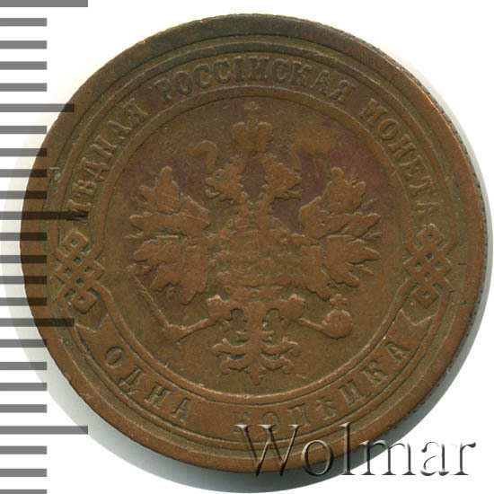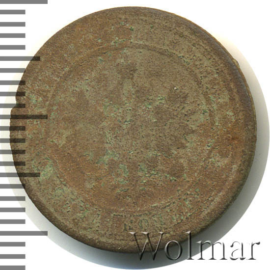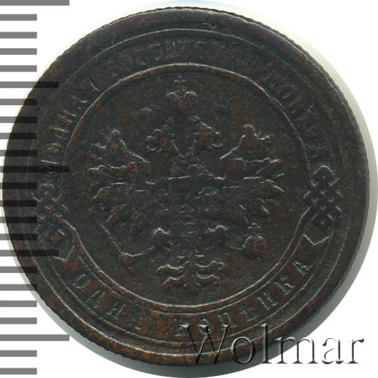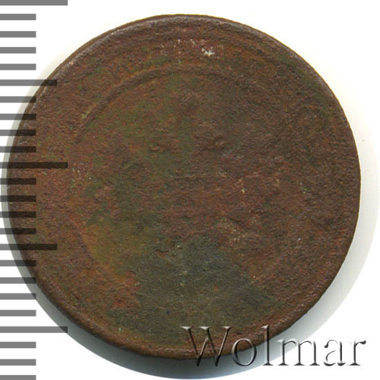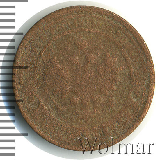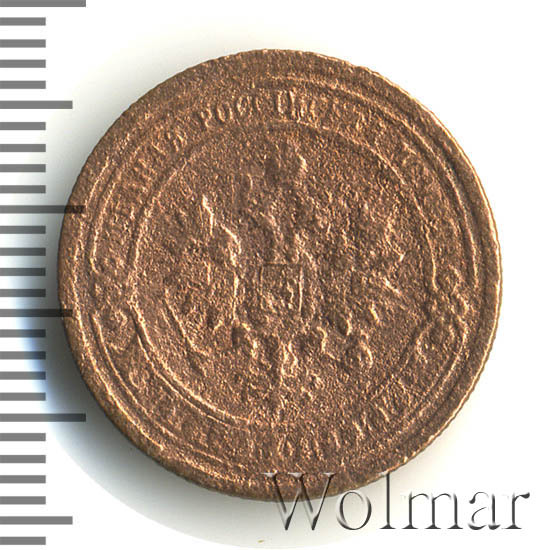 Одна из самых часто встречающихся медных монет данного периода. Тираж более 50 миллионов. Чеканка производилась на заводе Розенкранца в г. Санкт-Петербург. Найти АЦ монеты не составляет большого труда. Существует пруф-вариант, который является наиболее ценным.