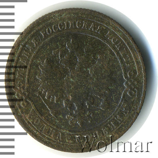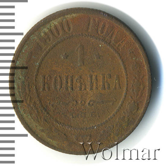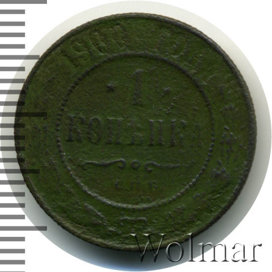 Разменная медная монета была отчеканена при Императоре Николае II. Тираж монеты большой - 30 миллионов экземпляров. Среди других медных монеты этого же периода не является редкой, но все же и не такой частой как 1 копейка 1899 года СПБ. Чеканилась данная монета на заводе Розенкранца в Санкт-Петербурге.