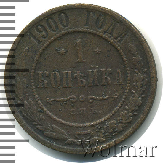 Реверс монеты 1 копейка 1900 года СПБ