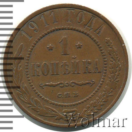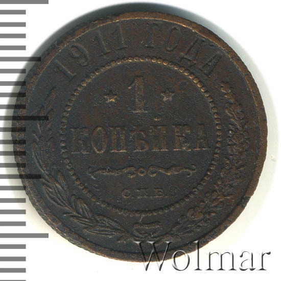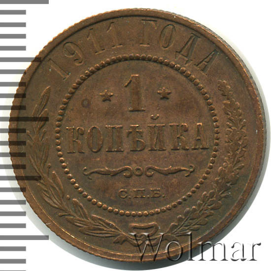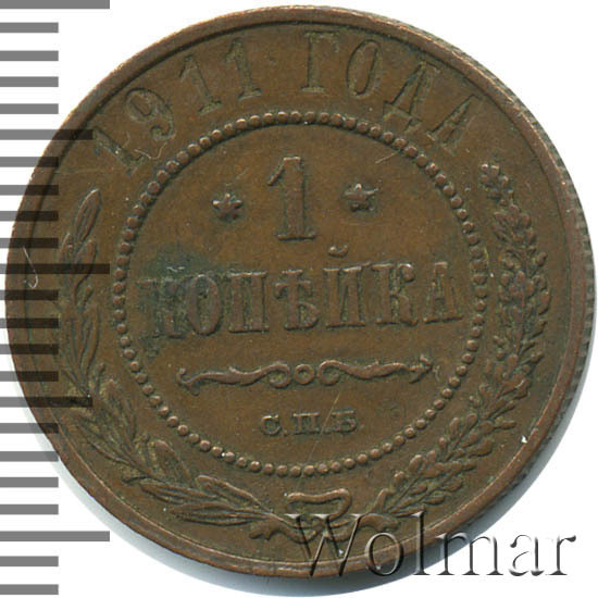 Реверс монеты 1 копейка 1911 года СПБ