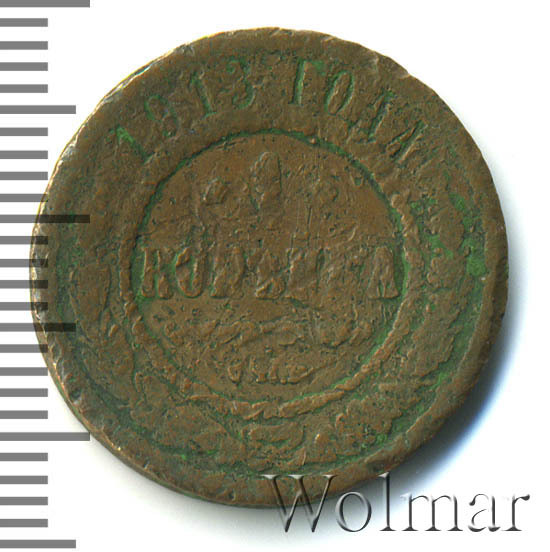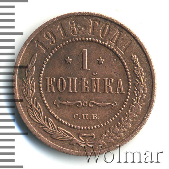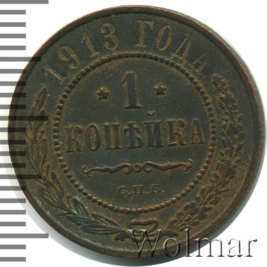 Реверс монеты 1 копейка 1913 года СПБ