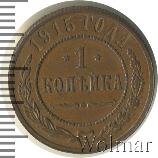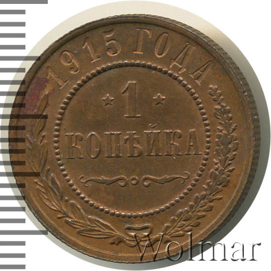1 копейки 1915 имеет красный цвет, немагнитная. Расположение аверса к реверсу – медальное (0 градусов). Монета выпущена большим тиражом, в связи, с чем цена её не велика. Наибольшую ценность представляют экземпляры в коллекционной сохранности UNC. Цена на такие экземпляры 1 коп. 1915 в разы выше стоимости обычных монеток, побывавших в обороте. Подробно ознакомиться с ценой 1 копейки 1915 года, Вы можете во вкладке «стоимость монеты», а так же принять участие в текущих аукционах, пройдя по вкладке «активные лоты».