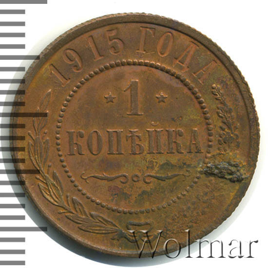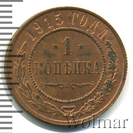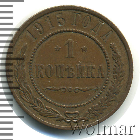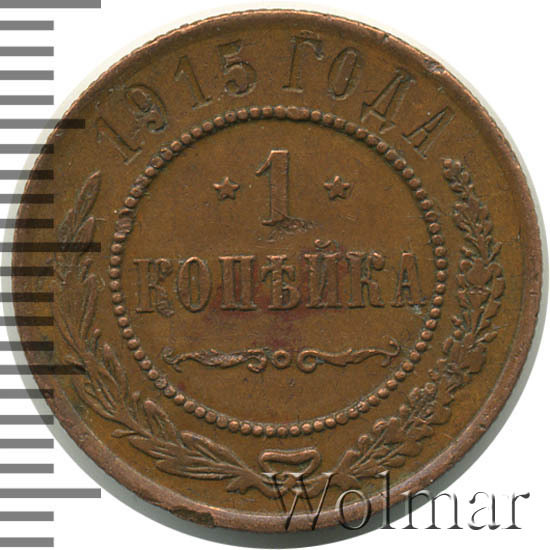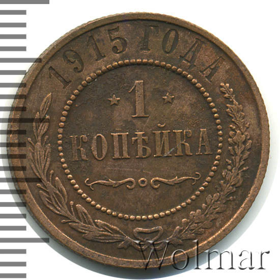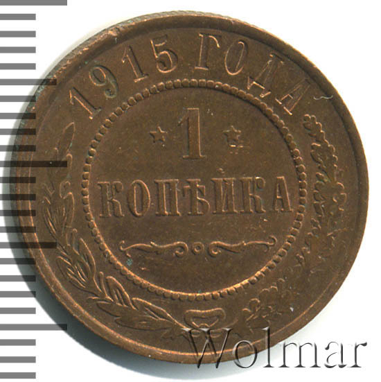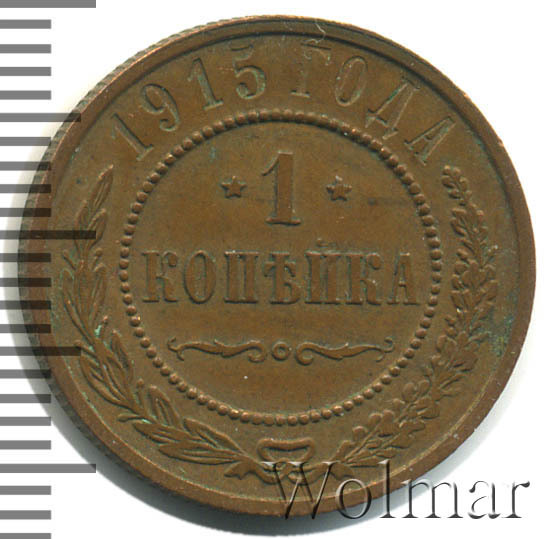 Копейка 1915 года, отчеканена на Петроградском монетном дворе, в самый разгар Великой (Первой мировой) войны. Первый год чекана медной монеты, периода правления императора Николая II, на которой не проставлены буквы мон. двора. Производство этой копейки велось по двум технологиям: обычного качества, для денежного хождения Российской империи, и полированного чекана (очень редки, т.н. качество Доказательство – Proof, цена на такие экземпляры, выше в десятки раз).