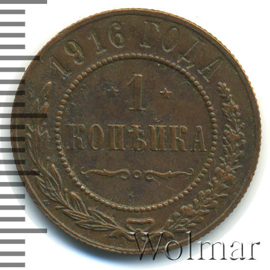 Реверс монеты 1 копейка 1916 года
