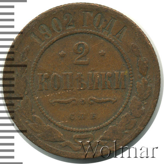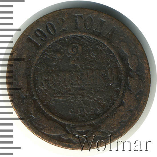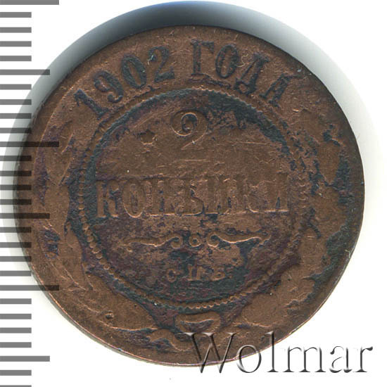 Монета 2 копейки 1902 года СПБ типичная монета своего года, мало чем отличается от других монет того же номинала, кроме того что чеканилась она в отличие от медных монет прошлых 6 лет на Санкт-Петербургском Моентном дворе и тираж ее не так велик, как тираж предыдущих лет. Не смотря на это, встречается она часто и стоит соответственно не сильно дорого. Исключение составляют монеты в превосходной сохранности, цена которых может быть довольно высокой. Стоит отметить, что монета 2 копейки 1902 года СПБ выпускалась в качестве Пруф, стоимость такой монеты намного выше чем монеты регулярного чекана.