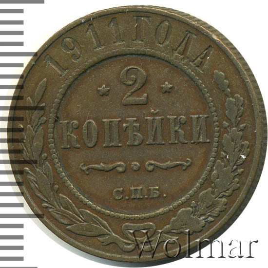 Реверс монеты 2 копейки 1911 года СПБ