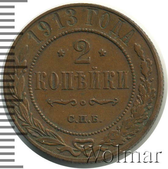 Реверс монеты 2 копейки 1913 года СПБ