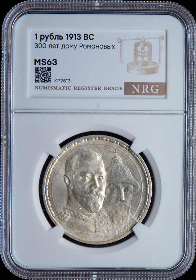 Рубль 1913 "300-летие царствования Дома Романовых" (в слабе)буквы (ВС) Аукцион: AdaCoins Online Состояние: MS 63 | 30.10.2025 |