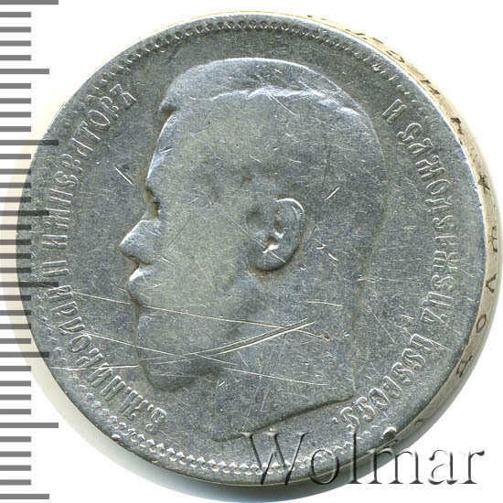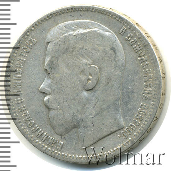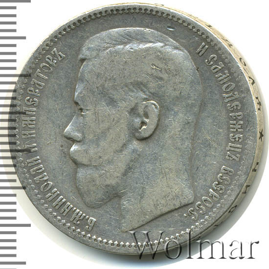 В центре профильный портрет влево императора Николая II. Слева надпись «Б.М. НИКОЛАЙ II ИМПЕРАТОР», справа - «И САМОДЕРЖЕЦ ВСЕРОСС.». По окружности канта имеются рельефные элементы, выполненные в виде зубцов.