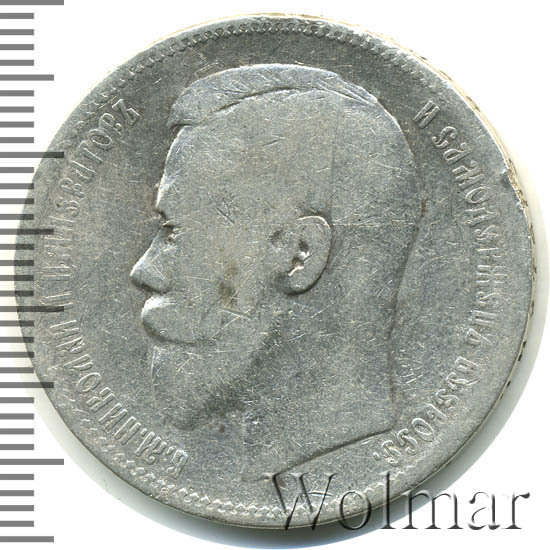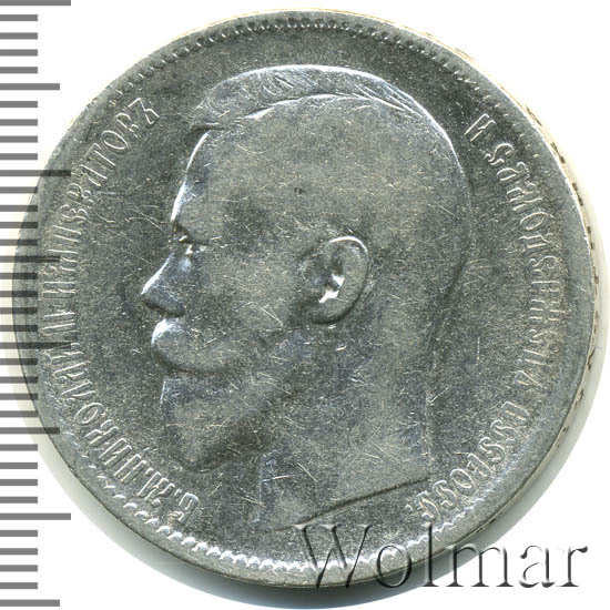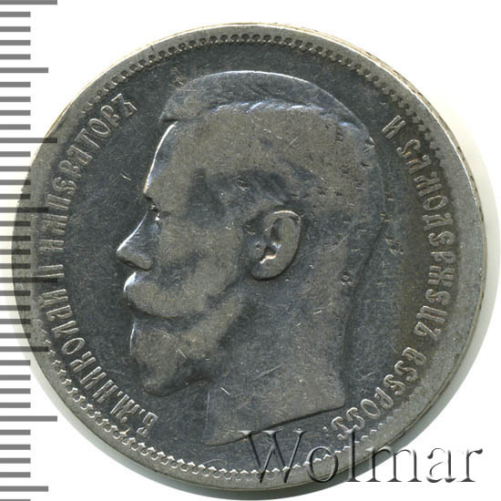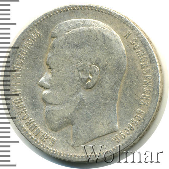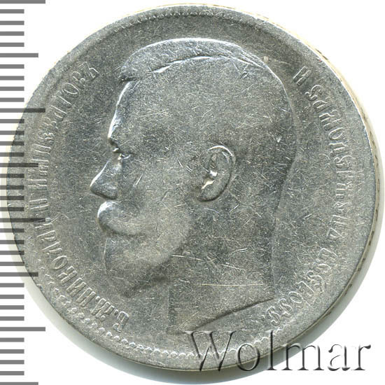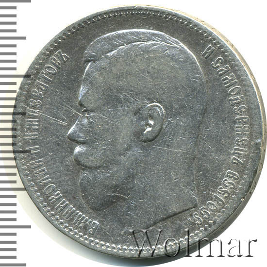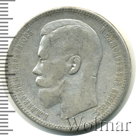 В центре профильный портрет влево императора Николая II. Слева надпись «Б.М. НИКОЛАЙ II ИМПЕРАТОР», справа - «И САМОДЕРЖЕЦ ВСЕРОСС.». По окружности канта имеются рельефные элементы, выполненные в виде зубцов.