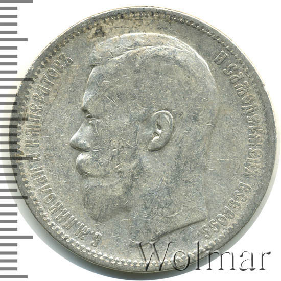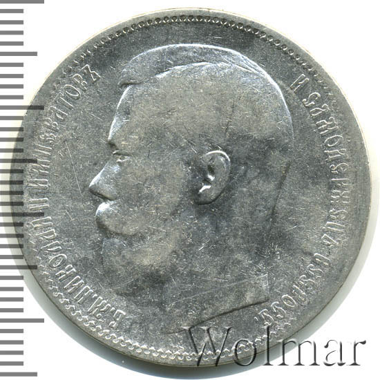 В центре профильный портрет влево императора Николая II. Слева надпись «Б.М. НИКОЛАЙ II ИМПЕРАТОР», справа - «И САМОДЕРЖЕЦ ВСЕРОСС.». По окружности канта имеются рельефные элементы, выполненные в виде зубцов.
