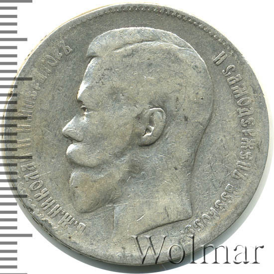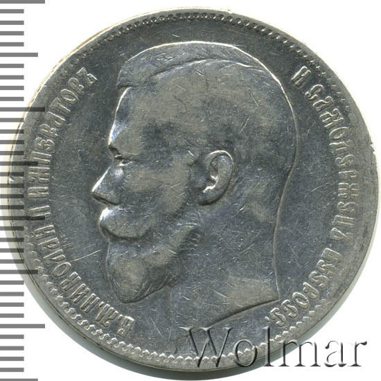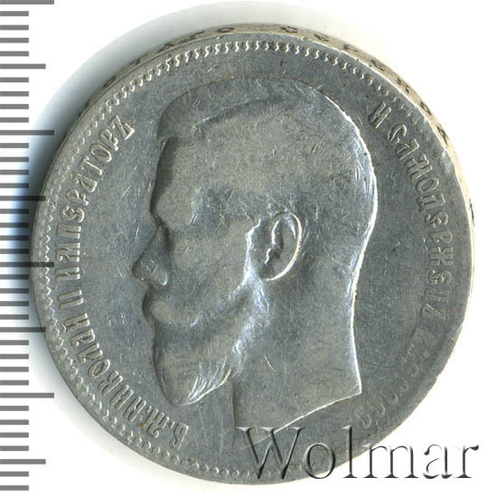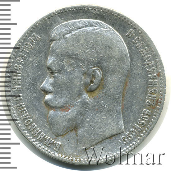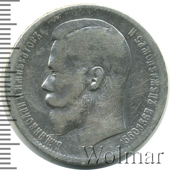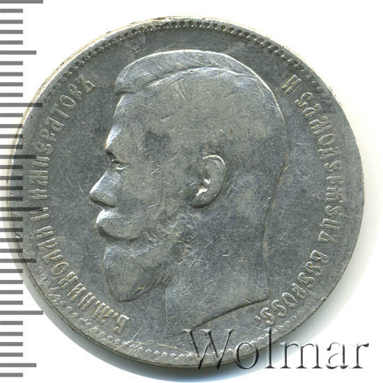 В центре профильный портрет влево императора Николая II. Слева надпись «Б.М. НИКОЛАЙ II ИМПЕРАТОР», справа - «И САМОДЕРЖЕЦ ВСЕРОСС.». По окружности канта имеются рельефные элементы, выполненные в виде зубцов.