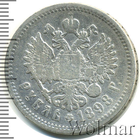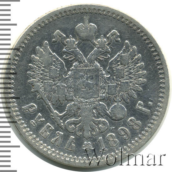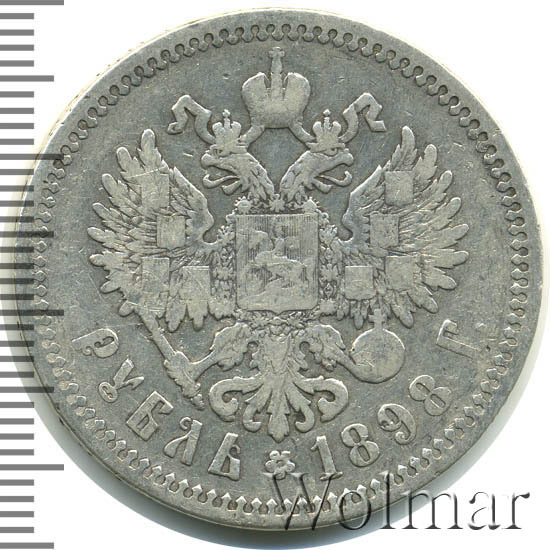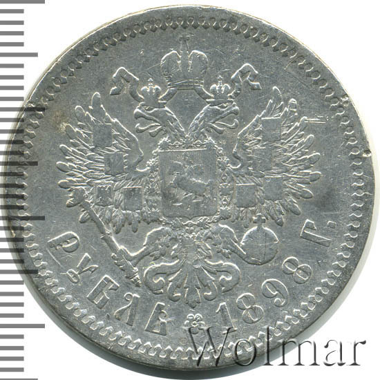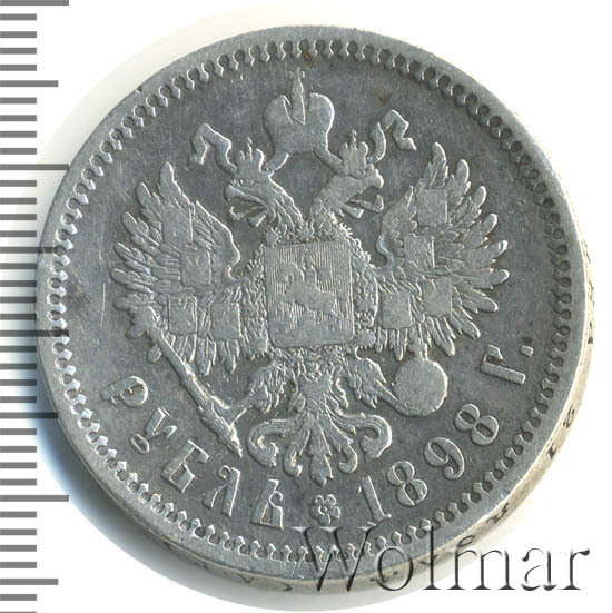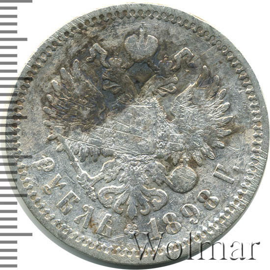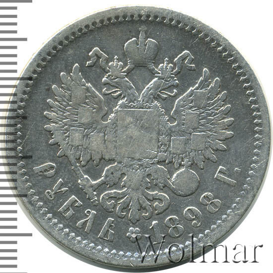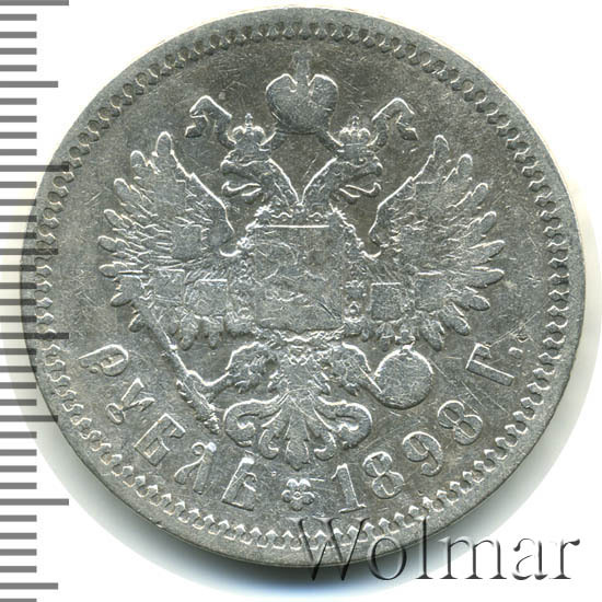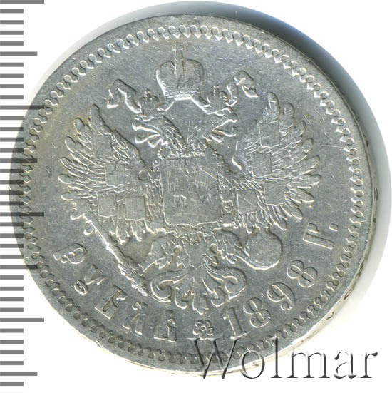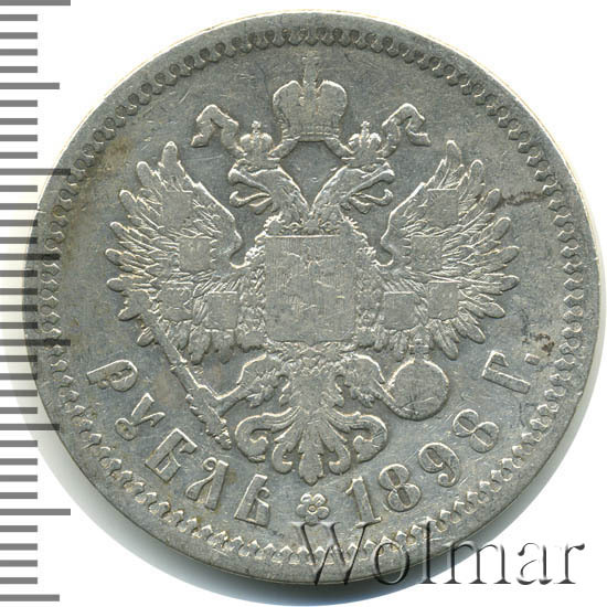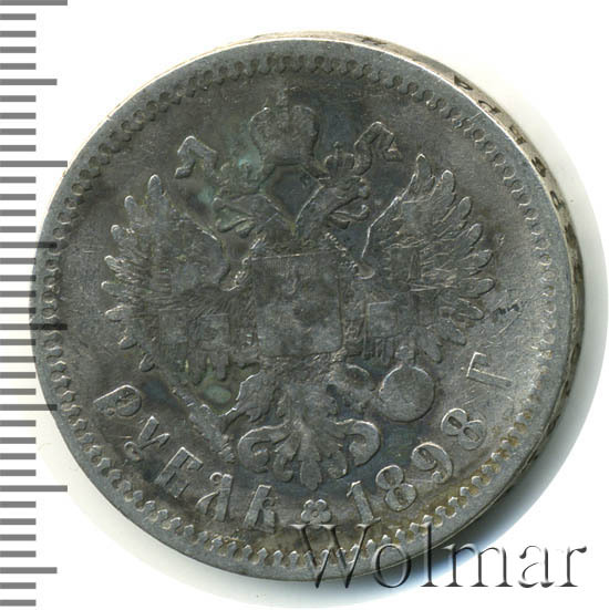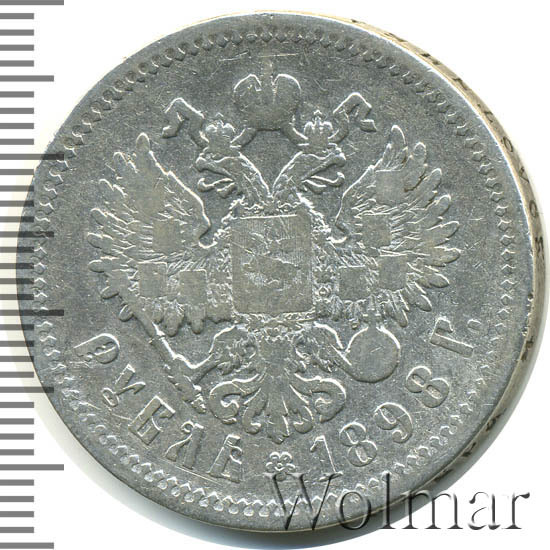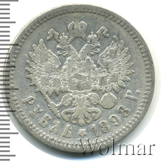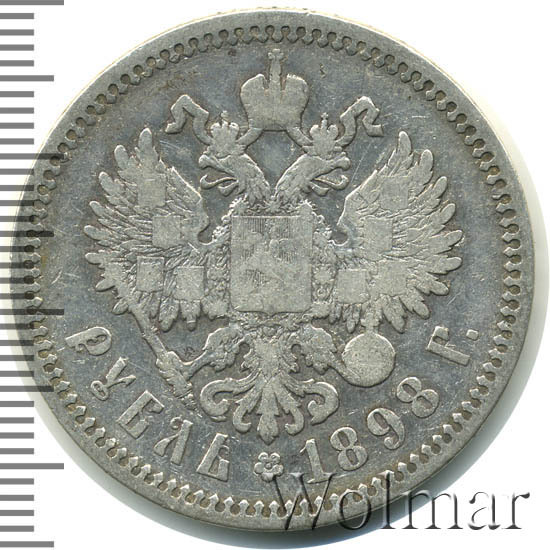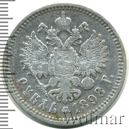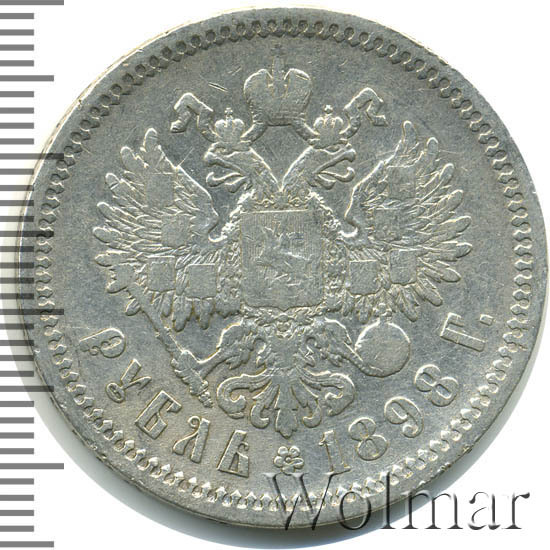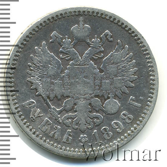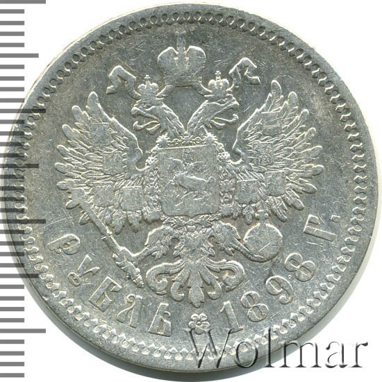 Серебряные рубли во время правления Императора Николая II чеканились с 1895 по 1915 год включительно. В 1898 году тираж отчеканенных рублей составил свыше 25 миллионов экземпляров. К сожалению, в отличном состоянии рубль данного года встречается не часто, поскольку он находился в обращении достаточно долгое время. Рубль чеканился не только на Петербургском монетном дворе, но так же по российскому заказу в Бельгии и во Франции. Отличить их можно по звездочкам на гурте вместо знака минцмейстера, Бельгия – две звезды, Франция – одна звезда. Надпись по всей окружности гурта вдавленная, содержит слова: «ЧИСТАГО СЕРЕБРА 4 ЗОЛОТHИКА 21 ДОЛЯ» и буквы (А • Г) – знак минцмейстера (Аполлон Грасгоф). Известны рубли 1898 года без гуртовой надписи и соосностью аверс-реверс 180 градусов. Такие монеты достаточно редкие, что заметно повышает их стоимость.
