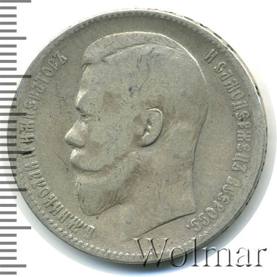 В центре профильный портрет влево императора Николая II. Слева надпись «Б.М. НИКОЛАЙ II ИМПЕРАТОР», справа - «И САМОДЕРЖЕЦ ВСЕРОСС.». По окружности канта имеются рельефные элементы, выполненные в виде зубцов.