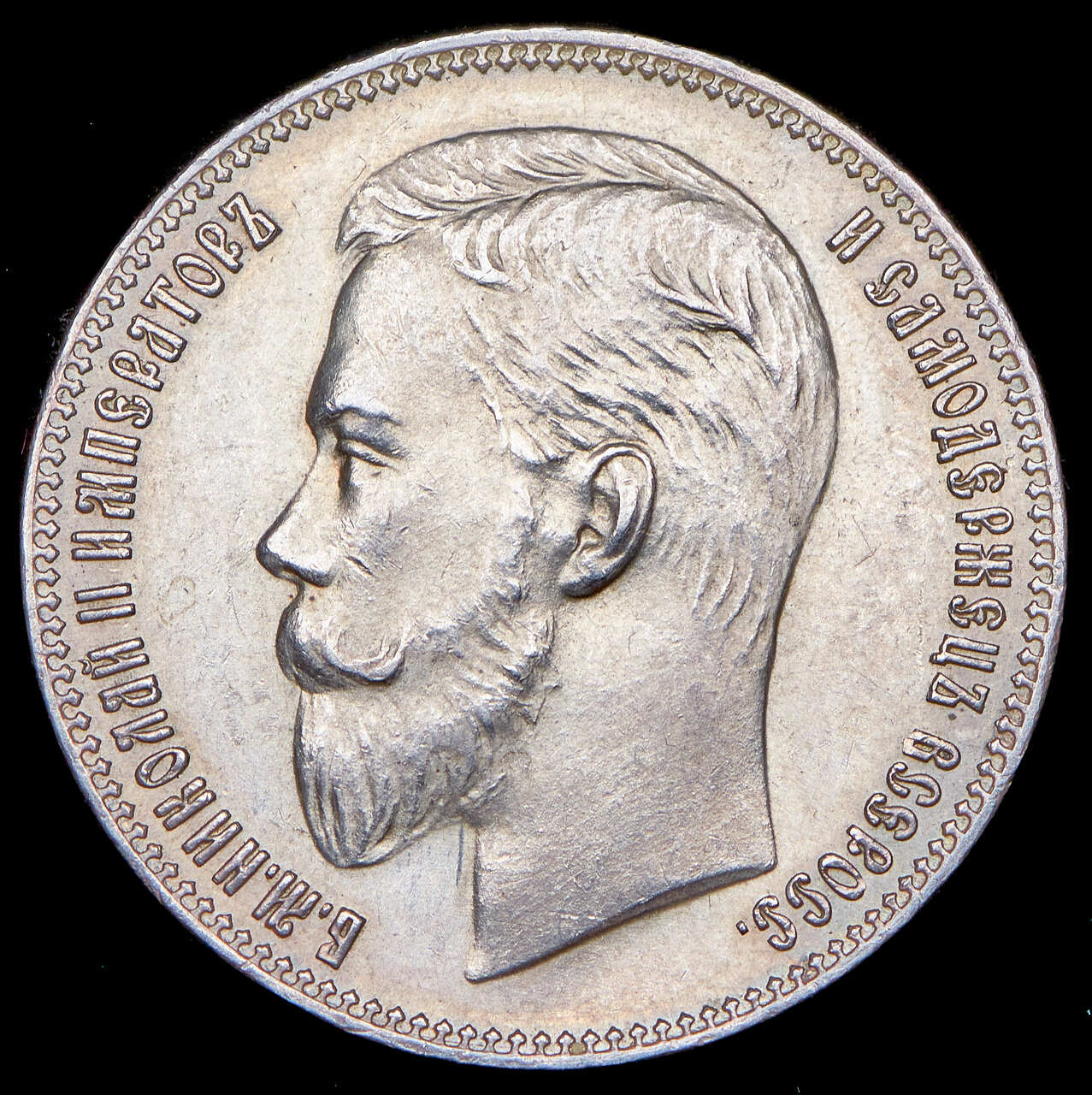 В центре изображен Малый Государственный Герб Российской империи - двуглавый орёл, головы которого увенчаны двумя коронами, третья, большая корона над ними. Все они соединены орденской лентой ордена Св. Апостола Андрея Первозванного. На груди орла расположен Московский герб, в щите изображен Георгий Победоносец с копьем поражающий дракона. Вокруг щита цепь ордена Св. Апостола Андрея Первозванного. На крыльях изображены гербы: Царства Казанского, Польского, Херсонеса Таврического, Астраханского, Сибирского, Грузинского и герб соединенных княжеств Киевского, Новгородского и Владимирского — по 4 на каждое крыло. В правой лапе орла – скипетр, в левой – держава. Под ним слева направо изображены: номинал - надпись «РУБЛЬ», цветочная розетка и дата выпуска «1906 Г.». По окружности канта имеются рельефные элементы, выполненные в виде зубцов.