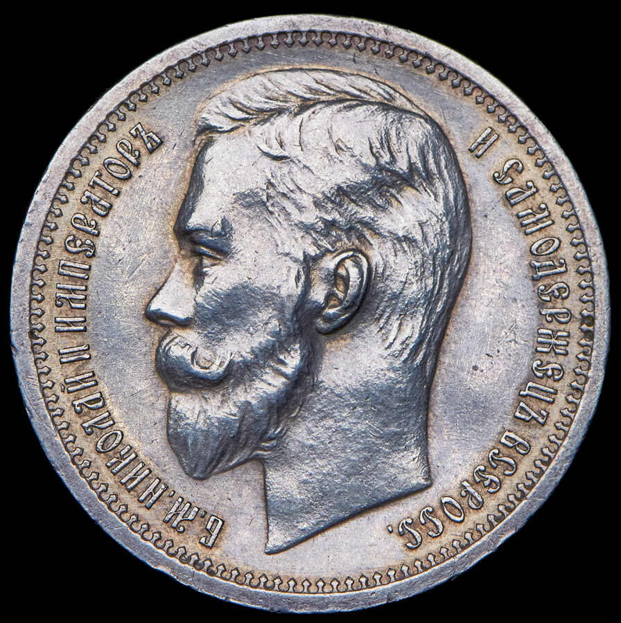 В центре профильный портрет влево императора Николая II. Слева надпись «Б.М. НИКОЛАЙ II ИМПЕРАТОР», справа - «И САМОДЕРЖЕЦ ВСЕРОСС.». По окружности канта имеются рельефные элементы, выполненные в виде зубцов.