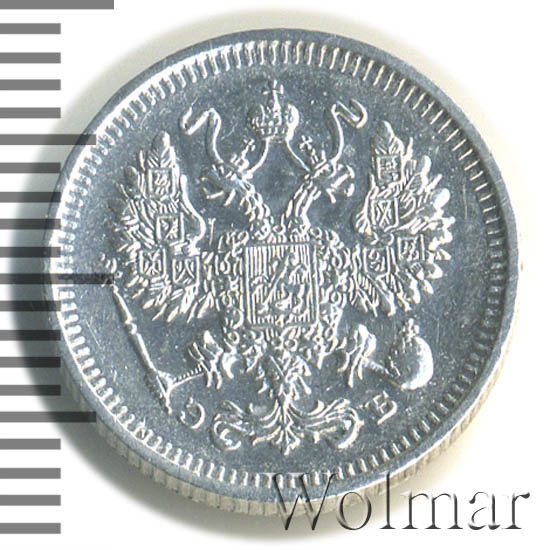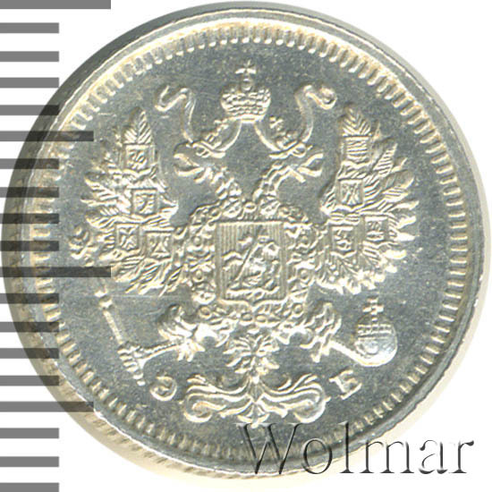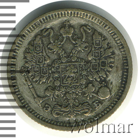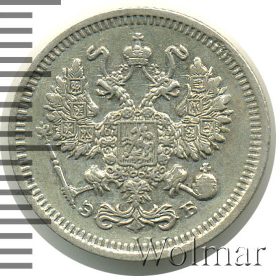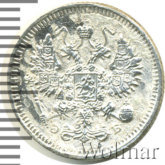 В центре изображен Малый Государственный Герб Российской империи - двуглавый орёл, головы которого увенчаны двумя коронами, третья, большая корона над ними. Все они соединены орденской лентой ордена Св. Апостола Андрея Первозванного. На груди орла расположен Московский герб, в щите изображен Георгий Победоносец с копьем поражающий дракона. Вокруг щита цепь ордена Св. Апостола Андрея Первозванного. На крыльях изображены гербы: Царства Казанского, Польского, Херсонеса Таврического, Астраханского, Сибирского, Грузинского и герб соединенных княжеств Киевского, Новгородского и Владимирского — по 4 на каждое крыло. В правой лапе орла – скипетр, в левой – держава. Под правой лапой – буква «Э», под левой – буква «Б». Инициалы минцмейстера Эликума Бабаянца. По окружности канта имеются рельефные элементы, выполненные в виде зубцов.