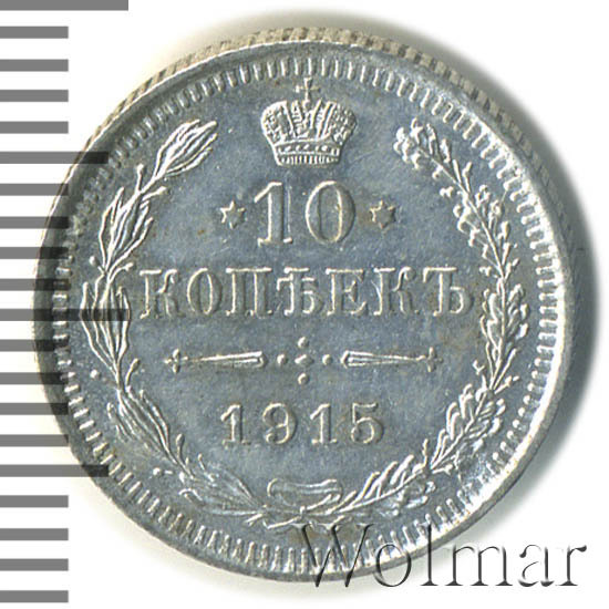 Цена на монету 10 копеек 1915 года ВС на сегодня, 10 марта 2026 года