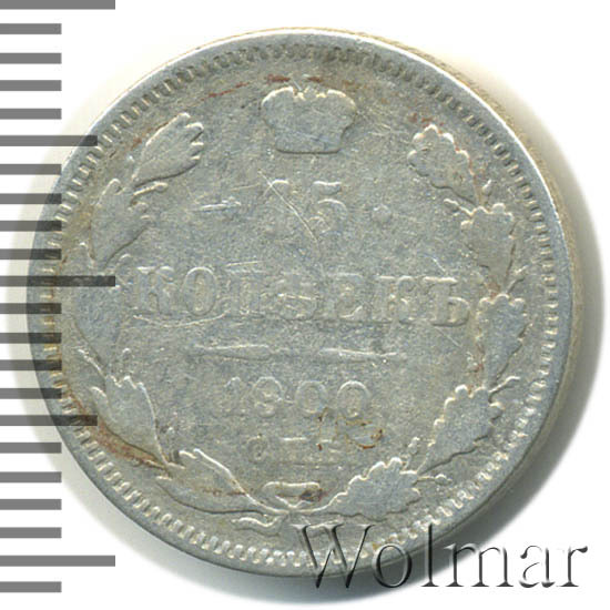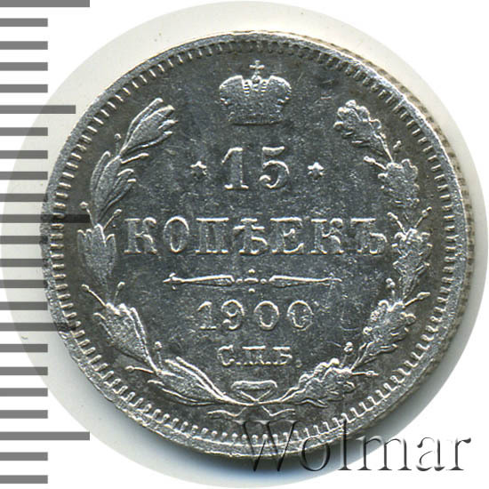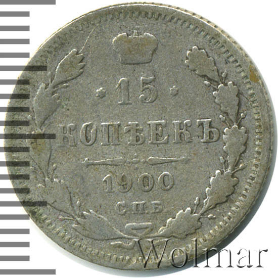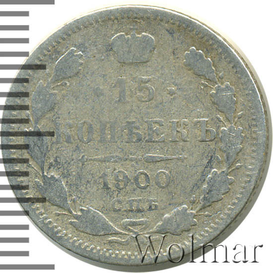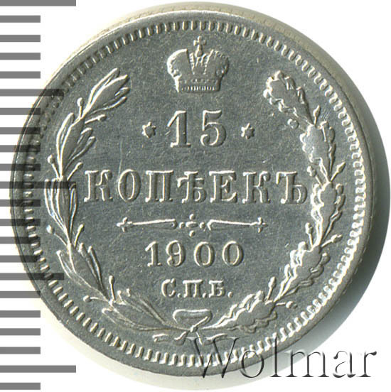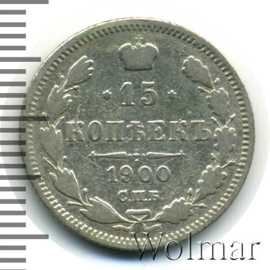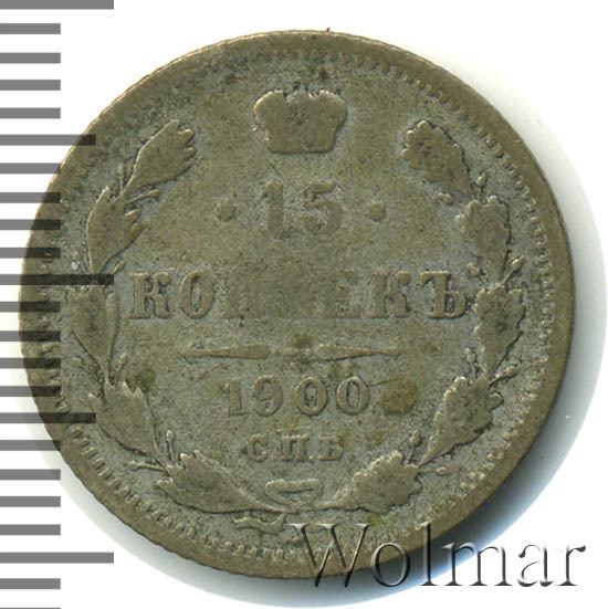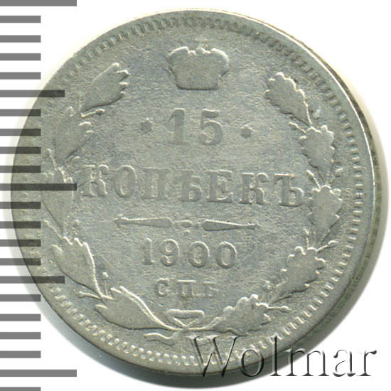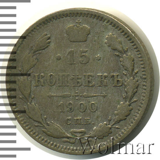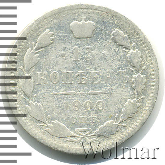 Реверс монеты 15 копеек 1900 года СПБ-ФЗ