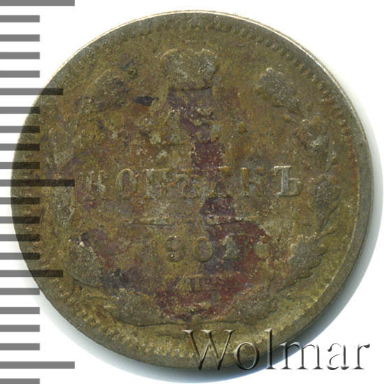 Реверс монеты 15 копеек 1901 года СПБ-ФЗ
