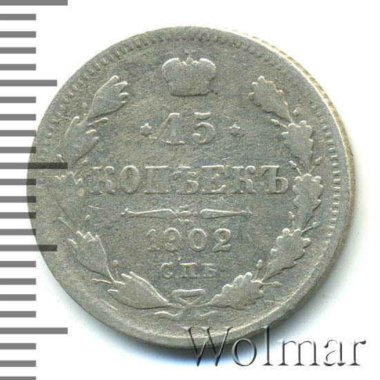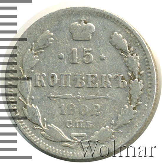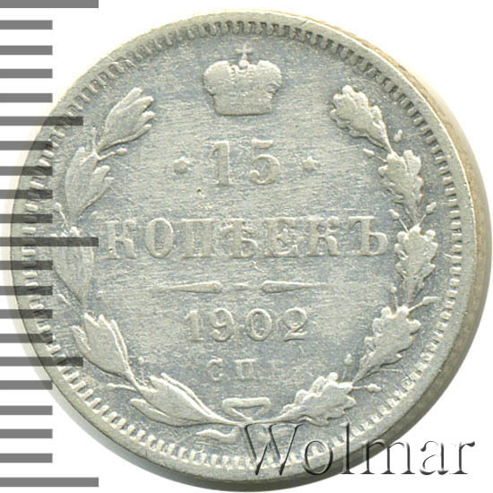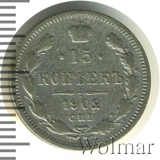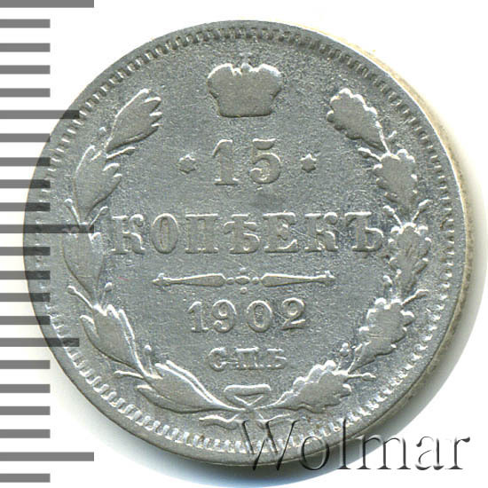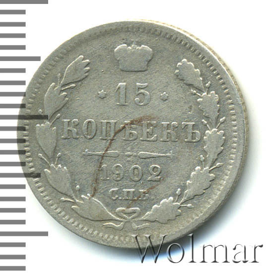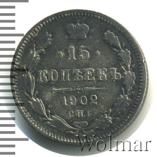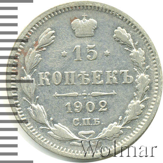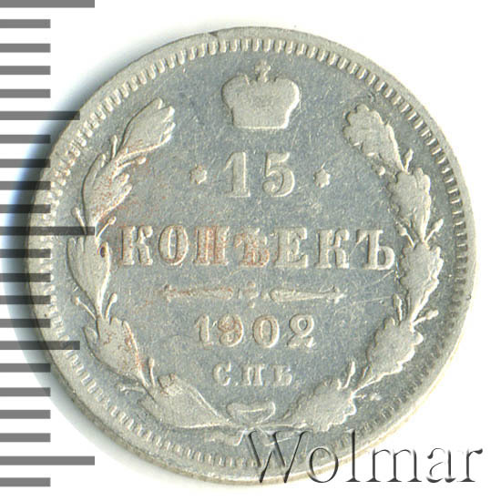 Реверс монеты 15 копеек 1902 года СПБ-АР